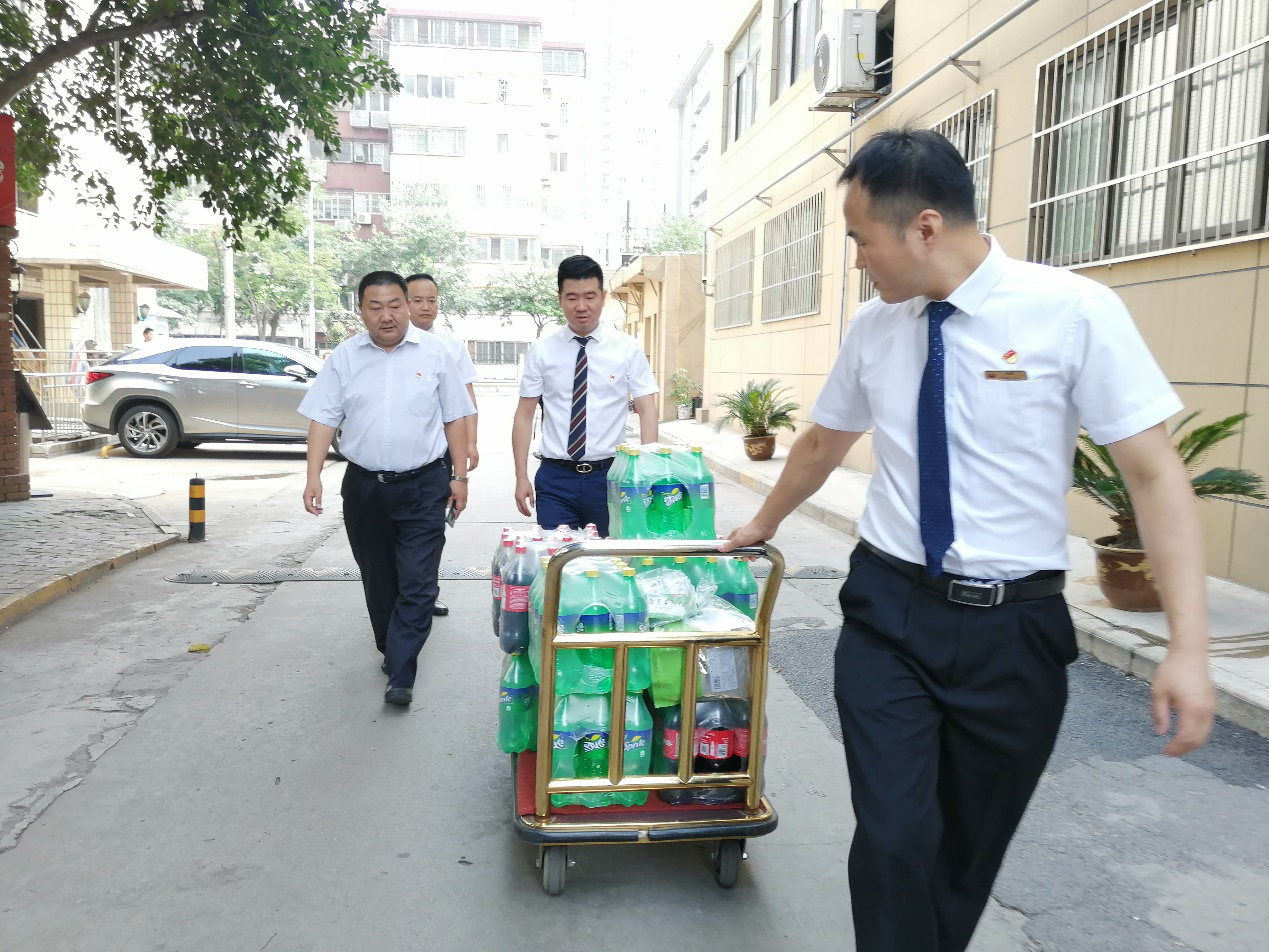 今年入夏以来,天气还算凉爽,但是随着天气气温的不断升高,外围工作人员承受高温带来的巨大压力。安保人员的露天站岗,工程部师傅高温维修,外围清扫员的循环作业、销售业务人员酷暑奔走,还有默默奉献的后台厨师,体能消耗很大,为了切实做好一线岗位员工的防暑降温工作,在集团公司的帮扶下,宾馆为高温岗位购买了饮料、茶叶、藿香正气水等防暑降温用品,由宾馆党委书记、工会主席陈西平、总经理李辉及部分高管成员一同深入到一线岗位,向坚守在一线岗位的职工表示慰问;另外宾馆由行政拨款,为所有在岗员工每人发放冰峰和茶π各一箱,全面深入开展暑期送清凉、送健康、送安全等慰问活动,把清凉送到了一线工作区域,把关怀送到员工的心坎。