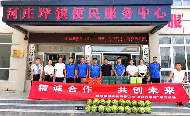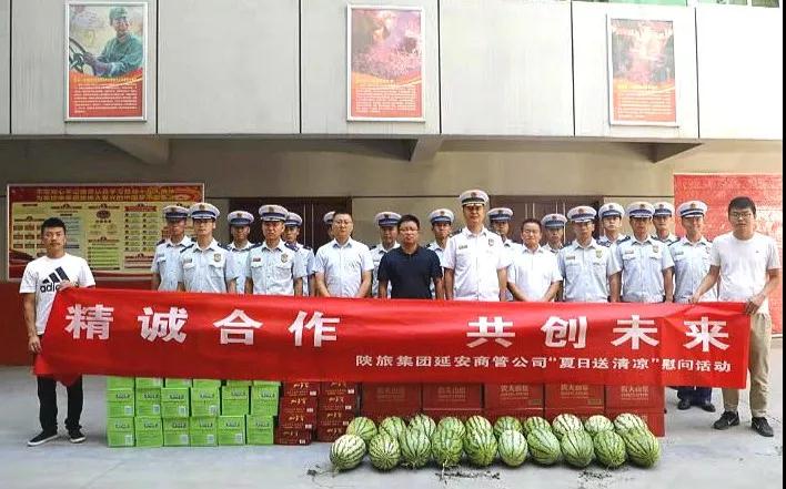7月31日至8月1日,陕旅集团延安商管公司工作人员分别前往宝塔区消防大队、河庄坪镇派出所、宝塔区城管局河庄坪中队、宝塔区公交公司等相关单位,开展“精诚合作 共创未来”送清凉慰问活动。
