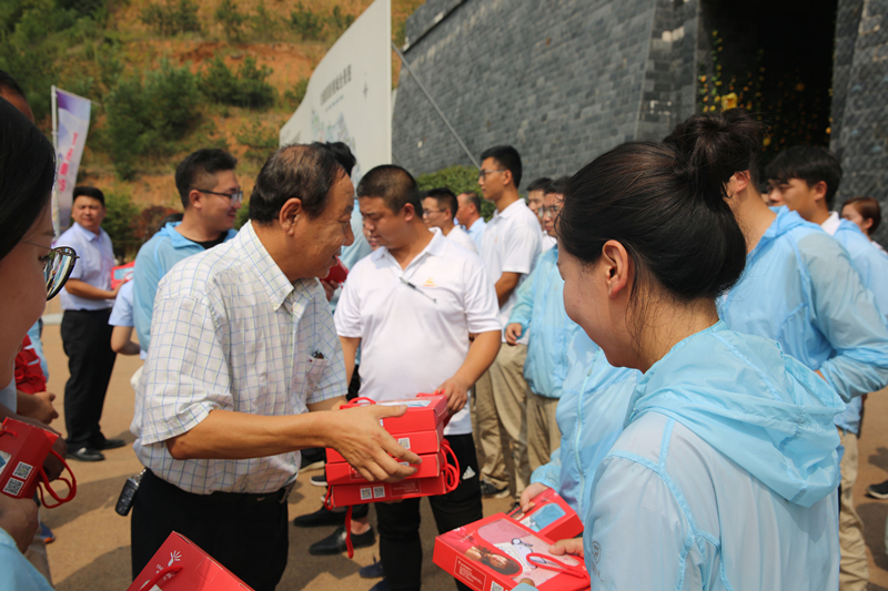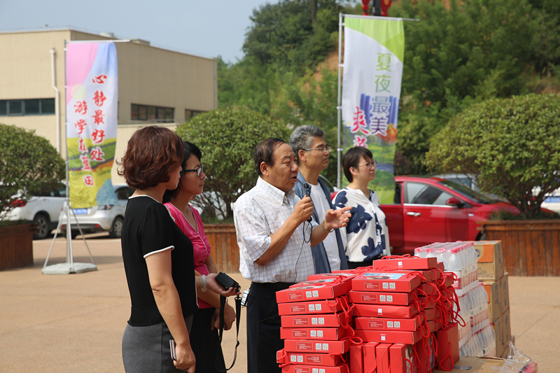 李主席一行走进景区,与一线员工一一握手,亲切的询问了大家在景区的工作生活情况,并为职工们发放了饮料、毛巾等防暑降温物品,把清凉送到了一线,把关怀送到员工心坎。