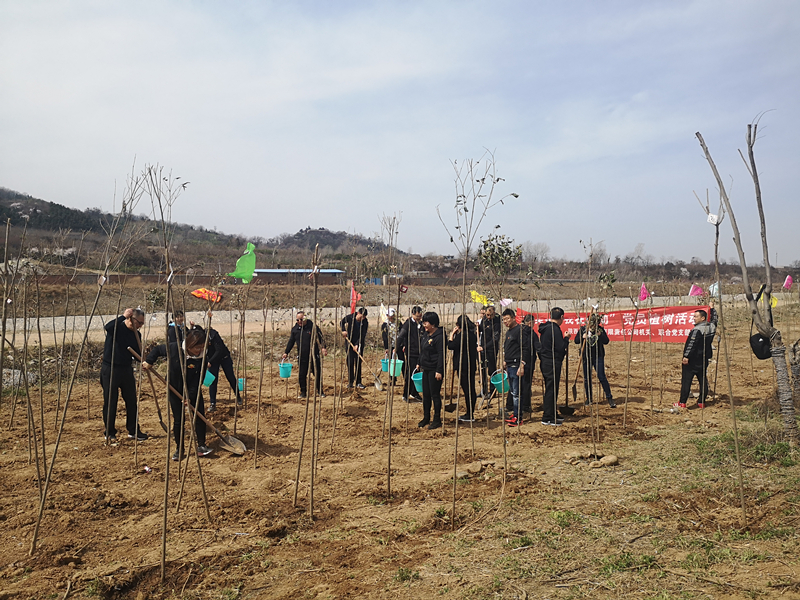 首先,由机关党支部书记汤研带领大家重温入党誓词,拉开了植树活动的帷幕。20名党员统一服装,佩戴党徽,面对鲜红的党旗,高举右手庄重宣誓,再一次接受了心灵的洗礼,表达了不忘入党初心,对党忠诚的决心,坚持用自己实际行动践行对党忠诚。随后大家扛着铁锹,拎着水桶,热情高昂地来到植树区。大家不怕脏,不怕累,有的挖坑,有的扶树,有的培土,有的浇水,忙得不亦乐乎。植树过程中大家相互配合,默契有序,体现了党员同志们劲往一处使、汗往一处流的团结奋进精神。