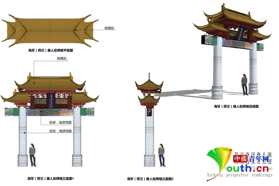 为了更加凸显新时代“唐人街”特色,在项目入口分别选取了英国利物浦、加拿大蒙特利尔、澳大利亚悉尼、荷兰海牙以及毛里求斯路易港五国唐人街牌坊,作为项目标志。既有早期华人开拓华埠时期的简朴记忆,也有落地生根实力壮大后的精心营造,地跨四大洲,追溯近百年,铭刻着炎黄子孙遍布世界不忘故土的赤子情怀,为古城西安留下一道美丽独特的建筑艺术风景。