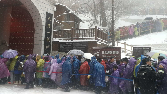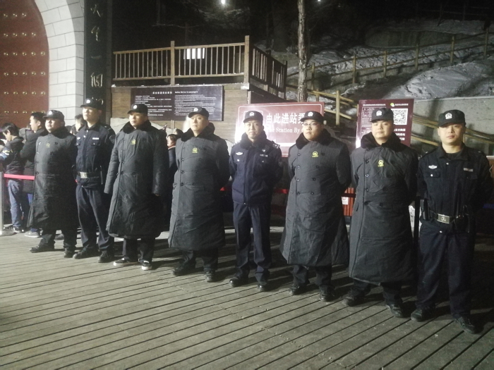 正月初三起乘索人数持续增长,景区天气突变,索道下站及主峰区持续降雨、降雪,公司指挥部会同景区协调公安干警30余人增援春节度节执勤,加强游客排队区域的引导、疏散工作,重点加强游客通行区域及危险地段的冰雪清理,确保人员、车辆安全通行,全力做好游客服务工作,确保了春节度节期间游客安全有序购票、乘索。