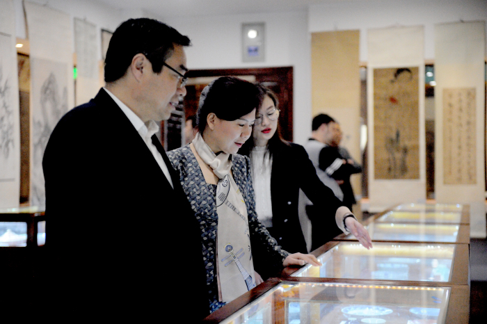 随后,在陕西省文物总店有限公司总经理张井炜同志的陪同下,赵总还实地考察参观了国有文物店展会现场以及拍卖会预展厅。