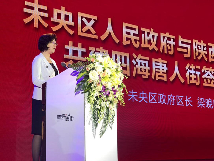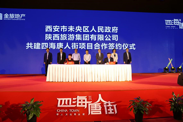 4月19日,以“遇见商机 预见未来”为主题,未央区政府与陕旅集团共建四海唐人街暨招商签约大会在西安锦江国际酒店盛大举行。陕旅集团党委书记、董事长周冰,未央区区委书记杨建强,陕旅集团党委副书记、总经理任公正,未央区区委副书记、区政府区长梁晚晴,西安市投资委副主任杜岩岫,西安市旅发委副主任余亚军,陕旅集团副总经理赵月望,未央区区委常委、宣传部部长郜义,未央区政府副区长王惠增,陕旅集团投资控股公司总经理王强等政府及企业领导、媒体代表、国内外知名品牌商家代表等500余人出席到场。