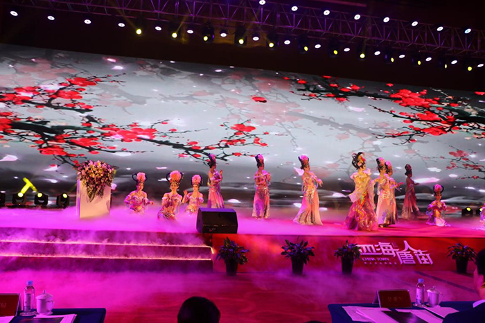 招商签约大会现场所有演绎,均为四海唐人街已入驻签约的商户自有项目。唐乐宫以仿唐《霓裳羽衣舞》表演开场,唐代歌舞和古典音乐完美融合,气势恢宏,亲历感受盛唐宫廷歌舞的恒久魅力,遥想当年盛唐气象。非物质文化遗产琴箫合奏演艺,展现了中国悠久渊远的声乐文化。
