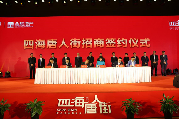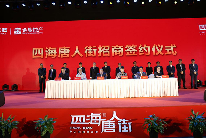 四海唐人街总建筑面积19万平方米。集街区型商业、集中型商业、地铁商业、写字楼、精品酒店为一体的城市文旅综合体。国际知名设计公司美国MG2担纲方案设计,汇聚澳洲、欧美、南洋、北美以及中国近代建筑艺术,倾情打造五大风情主题街区、三大牌坊主题广场,街区间连廊相交,6米奢阔空间,尽显万国来潮时代风尚。中影星美影城、新华书店、荷苗艺术剧场、天空之城、洛克公园、SPAO、西贝莜面村、真爱、坊间味道、唐乐宫、零距离健身、绿树电竞、唐人优鲜、汉堡王、醉长安、百姓厨房、图途、巴拉巴拉、阿迪达斯、耐克、斯凯奇、李宁、安踏、Kappa、拉夏贝尔、戴梦得、中国黄金、ME CITY、Mixblu、椰岛造型等500多位品牌商代表莅临现场签约、观摩。火爆的招商场面吸引了腾讯大秦网、今日头条、华商网、网易、搜狐网、凤凰网、赢商网等20余家媒体到场采访。共同见证十大主力品牌登台签约盛况。