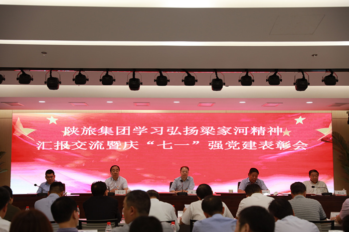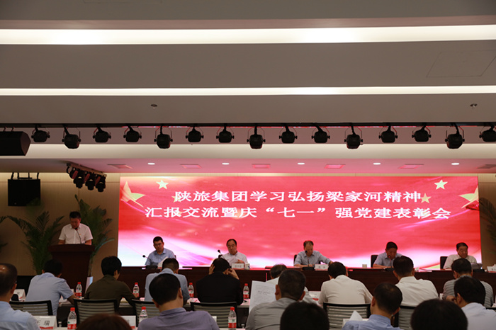 6月26日下午,集团公司党委在陕旅豪布斯卡大楼5楼召开学习弘扬梁家河精神汇报交流暨庆“七一”强党建表彰会。集团领导班子成员,总部中层干部、全体党员,二三级企业党政主要负责人、副书记,优秀党员和党务工作者代表等100余人参加。会议由党委副书记、总经理任公正主持。