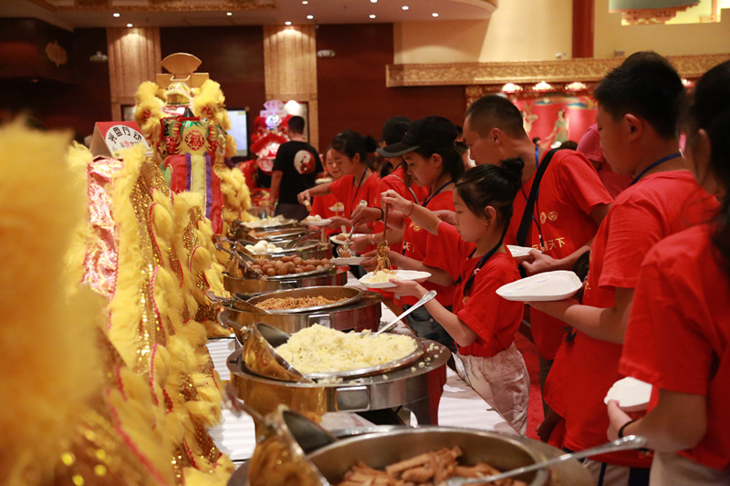 西安唐乐宫作为本次西安公益之行旅程的第一站,在唐乐宫剧院餐厅内,精心为孩子们准备了各种美味佳肴。孩子们来到西安唐乐宫剧院餐厅,当看到餐台上满满摆放的食物时,他们的眼睛闪闪发亮,不自觉地发出了惊讶的声音。在自助餐前孩子们自觉地排起了队,不停踮起脚尖往餐盘里张望:这个是什么菜?好香哦!一勺米饭、些许糖醋里脊、一块牛排、些许薯条,孩子迫不及待的开动起来。这时,无意中看到一个孩子将牛排放在一边,只顾着吃米饭和薯条,我不禁好奇的问他怎么不吃肉,孩子不好意思回答,旁边的孩子说:留着把饭吃完了再慢慢吃!眼泪瞬间就充满了我的眼眶。不禁感慨万千,当城里的一些家长还在为孩子营养过剩发愁时,山里的孩子因物质匮乏,就那一块牛排让孩子们格外的珍惜,要放到最后来慢慢感受和仔细回味。在镜头跟随下,小编观察到,几乎所有孩子的餐盘都干干净净不留一粒米。