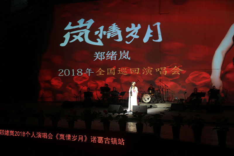 8月17日晚,陕旅集团诸葛古镇锦冠剧场外灯火璀璨、人潮涌动,“2018‘岚情岁月’郑绪岚全国巡回演唱会”诸葛古镇站盛大开幕。著名女高音歌唱家郑绪岚莅临诸葛古镇,倾情献艺。当晚锦冠剧场座无虚席,一票难求,一度出现加座现象,现场观众热情高涨,互动气氛十分热烈。舞台上,郑绪岚用她那天生美妙的歌喉向观众诠释了那个时代音乐的无限魅力,将现场观众带回了那个曾经逝去的岁月。郑绪岚身着华丽的服装站在舞台中央,连续演唱了15首经典单曲,曲曲观众掌声不断,尤其是其成名作《牧羊曲》、《大海啊故乡》等曲子引起了观众的强烈共鸣,现场掌声雷动、喝彩声持续不断,将演唱会的气氛推向了高潮,演出活动取得圆满成功。