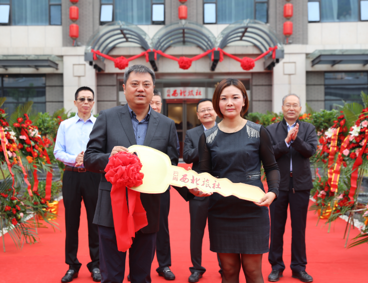 在接受了舞狮队为西北旅社带来的吉祥与祝福后,陕旅集团延安公司副总经理、商管公司总经理胡江将酒店金钥匙移交于酒店委托管理方——陕旅集团云尚精品酒店管理公司总经理姜晓萍手中,陕旅集团副总经理、延安公司董事长吴斌上台宣布西北旅社隆重开业,并同陕旅集团副总经理、云尚精品酒店管理公司董事长王汉琳、延安公司总经理高洁、延安公司党委副书记高晋、延安公司常务副总经理刘博、陕旅集团唐城资产公司副总经理牟华共同为西北旅社揭幕。