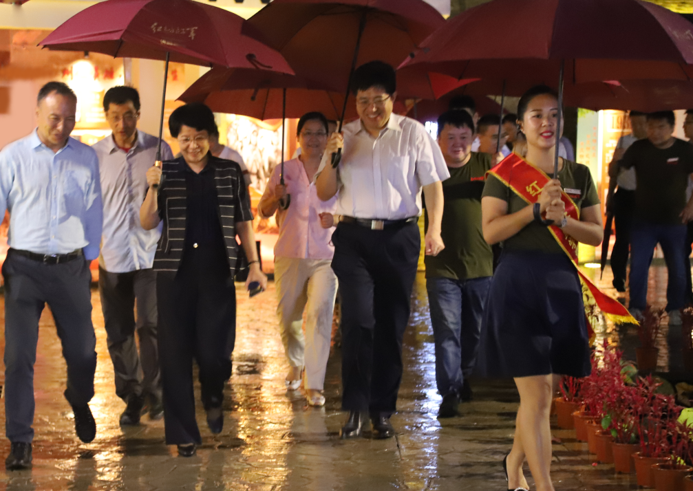 9月28日,海南省委常委、省委宣传部肖莺子部长率全省文明城市创建工作经验交流会嘉宾,来到三亚红色娘子军演艺公园视察创建文明景区工作,并冒雨观演大型椰海青春实景影画•红色娘子军。