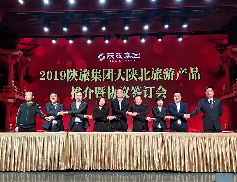 3月12日,由陕西旅游集团有限公司主办,陕旅集团延安文化旅游产业投资有限公司、陕西黄河壶口文化旅游发展有限责任公司、延安唐乐宫文化餐饮有限公司、延川黄河乾坤湾景区管理局、延安旅游(集团)有限公司宝塔山分公司、延安大剧院运营管理有限公司等共同承办的“2019陕旅集团大陕北旅游产品推介暨协议签订会”在西安唐乐宫举办。陕西旅游集团有限公司党委副书记、董事常梦春,陕西省文化和旅游厅资源开发处副处长董亚美,陕西旅游集团延安文化旅游产业投资有限公司总经理刘博,延川黄河乾坤湾景区管理局局长、延川县文化旅游集团董事长张清辉,延安大剧院运营管理有限公司董事长崔凯,延安旅游(集团)有限公司宝塔山分公司工会主席刘阿惠,西安一日游联合体理事长马铭瑶、陕西省旅游协会旅行社分会副会长李杉、西安市旅游协会副会长余斌、陕西黄河壶口文化旅游发展有限责任公司董事长、总经理国小强等领导嘉宾及省内各大旅行社、电商、媒体等代表400余人出席并参加了本次活动。