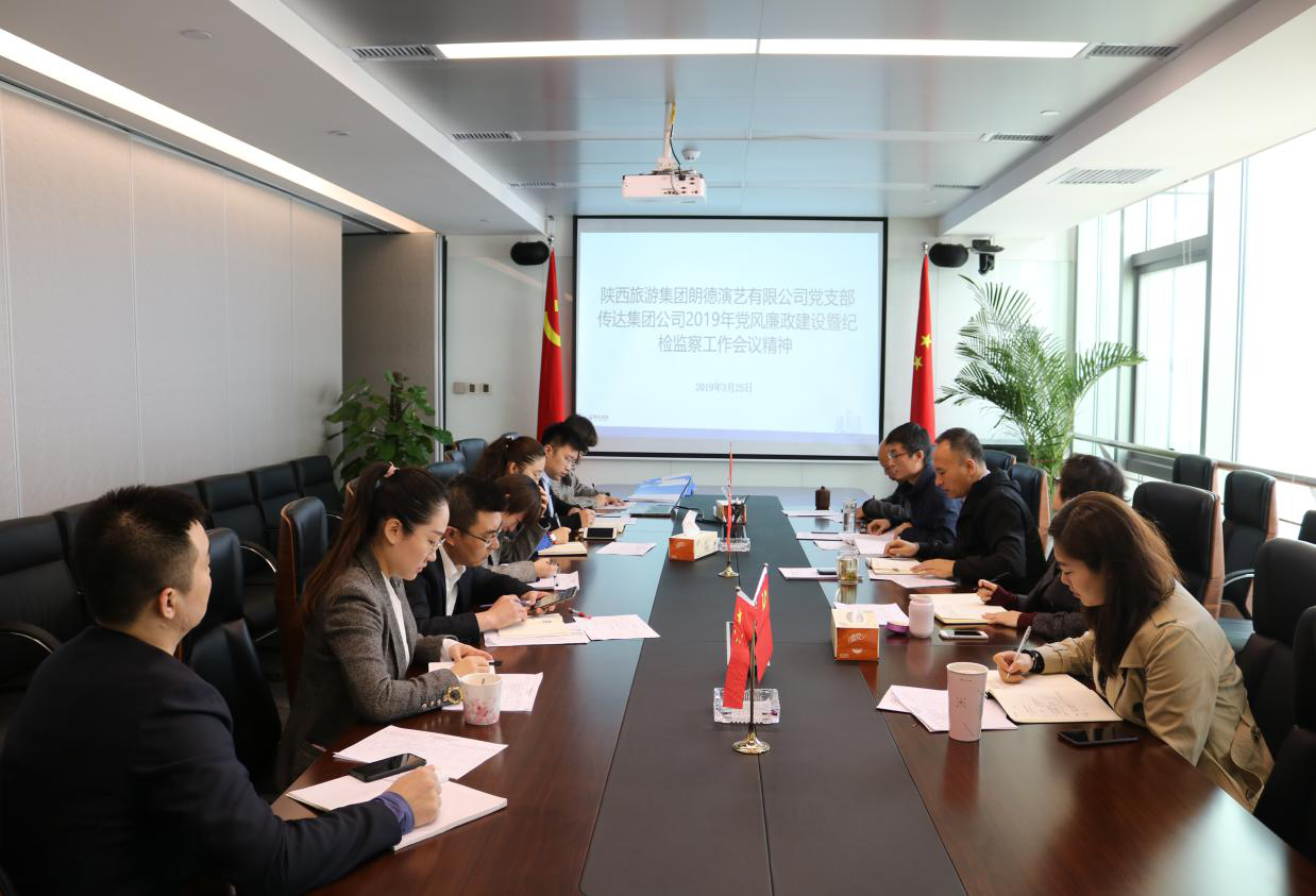 3月25日上午,陕旅朗德演艺有限公司党支部召开扩大会议,传达集团2019年党风廉政建设暨纪检监察工作会议精神。
