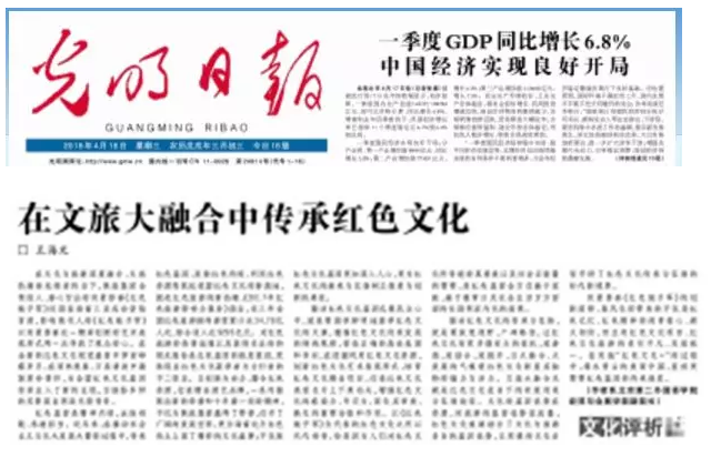 4月18日出版的《光明日报》第2版聚焦陕旅集团,发表了题为《在文旅大融合中传承红色文化》的评论员文章。现全文刊发,以飨读者。