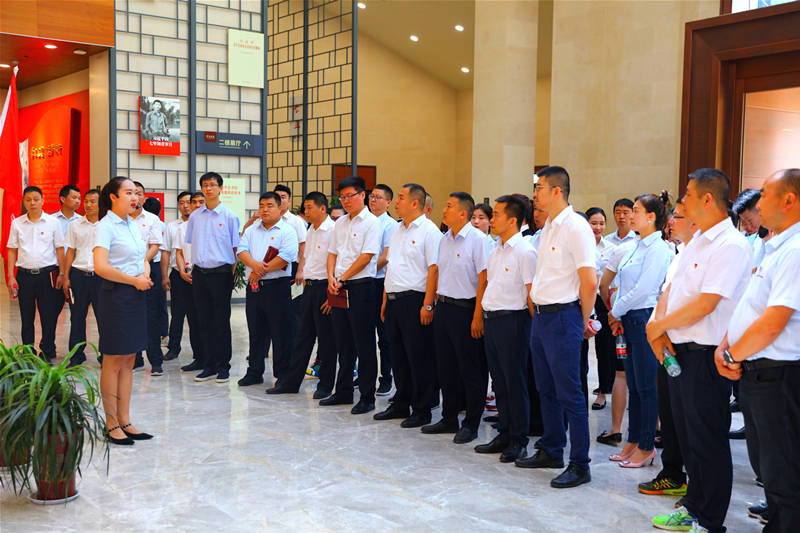 百余名党员干部同志斗志昂扬,排着整齐的队列徒步前往杨家岭旧址,在中共七大会址前重温入党誓词,瞻仰革命旧址。随后乘车前往新区“延安学习书院”,现场重温中国特色社会主义理论体系大纲和“五位一体”总体布局、“四个全面”战略布局等具体要求,深入感受红色文化和习近平新时代中国特色社会主义思想精髓。