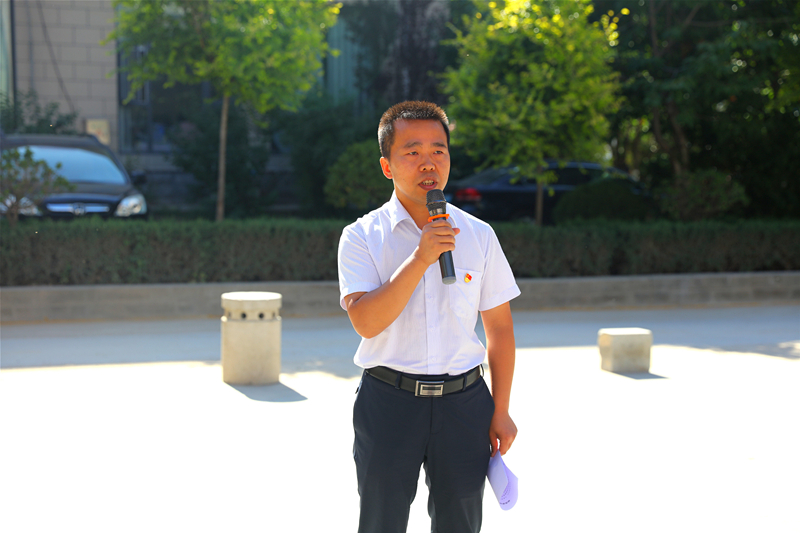 早上9点,娇艳的太阳从东边冉冉升起,全体党员怀揣着激昂的心情集合于枣园路延安唐乐宫前,陕旅集团延安公司党委委员、副总经理吴亚光作动员讲话。他指出,中国共产党从诞生到现在,已经走过了98年的光辉历程,实践证明,我们党是一个坚持科学武装、先进性特征鲜明的党,是一个一切为了群众、全心全意为人民服务的党,是一个经得住各种考验、不断成熟自信的党。作为一名中共党员,应引以为傲,同时锤炼自己,紧密团结在以习近平同志为核心的党中央周围,认真贯彻落实中央和省委、集团党委的决策部署,牢记党的宗旨,传承“红色基因”,时刻发挥先锋模范作用,为全面建成小康社会作出新的更大的贡献,向祖国70华诞献礼!