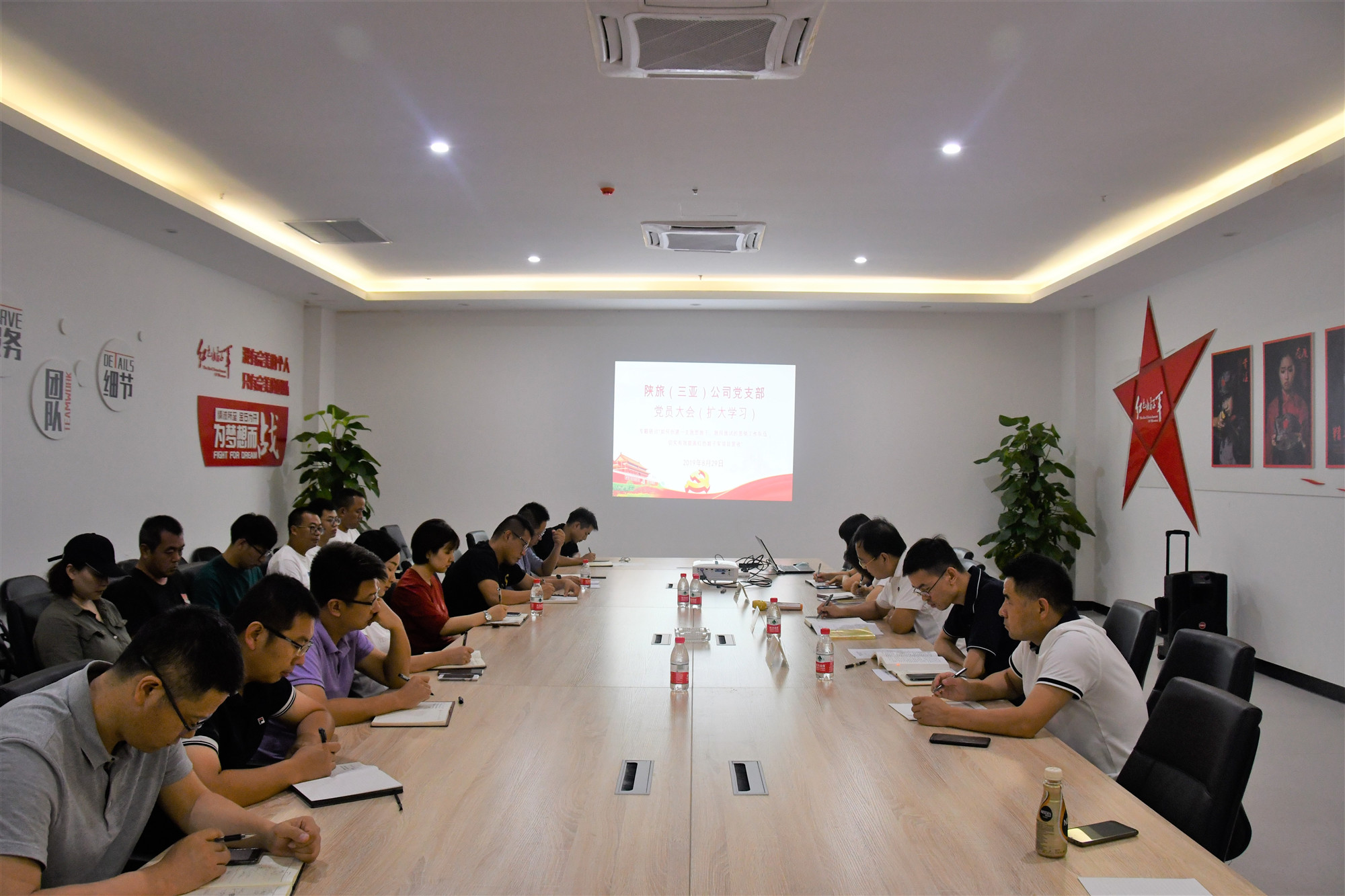 8月29日下午,陕旅(三亚)公司党支部组织召开党员大会,会议结合公司经营工作情况进行集体学习,并围绕“如何创建一支敢想敢干敢闯敢试的营销工作队伍,切实有效提高红色娘子军项目营收”进行专题研讨。会议由陕旅(三亚)公司党支部书记、总经理吕力主持,公司党员及中层以上人员、集团派驻营销支援组党员参加会议。