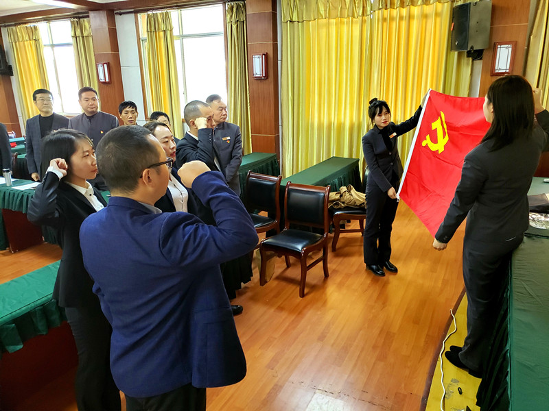 参观结束后,汉中公司党支部举行了2019年度党员纳新活动,3名预备党员面对鲜红的党旗,郑重宣誓加入中国共产党。党支部书记李斌平指出,自汉中公司党支部成立以来,一直重视党员发展工作,此次宣誓入党的3名同志是汉中公司党支部培养成熟的首批预备党员,他希望新同志能够以宣誓入党为起点,认真学习,扎实工作,乐于奉献,争做合格党员。