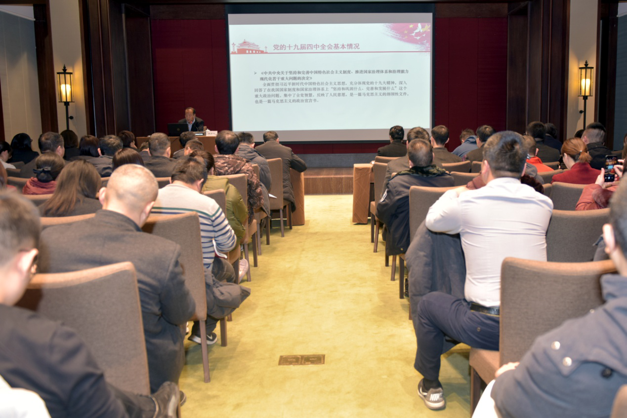 党委副书记、总经理姚新垣介绍了党的十九届四中全会基本情况,围绕以下四个方面进行深入宣讲。