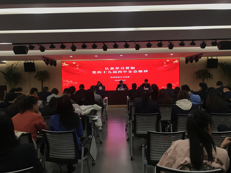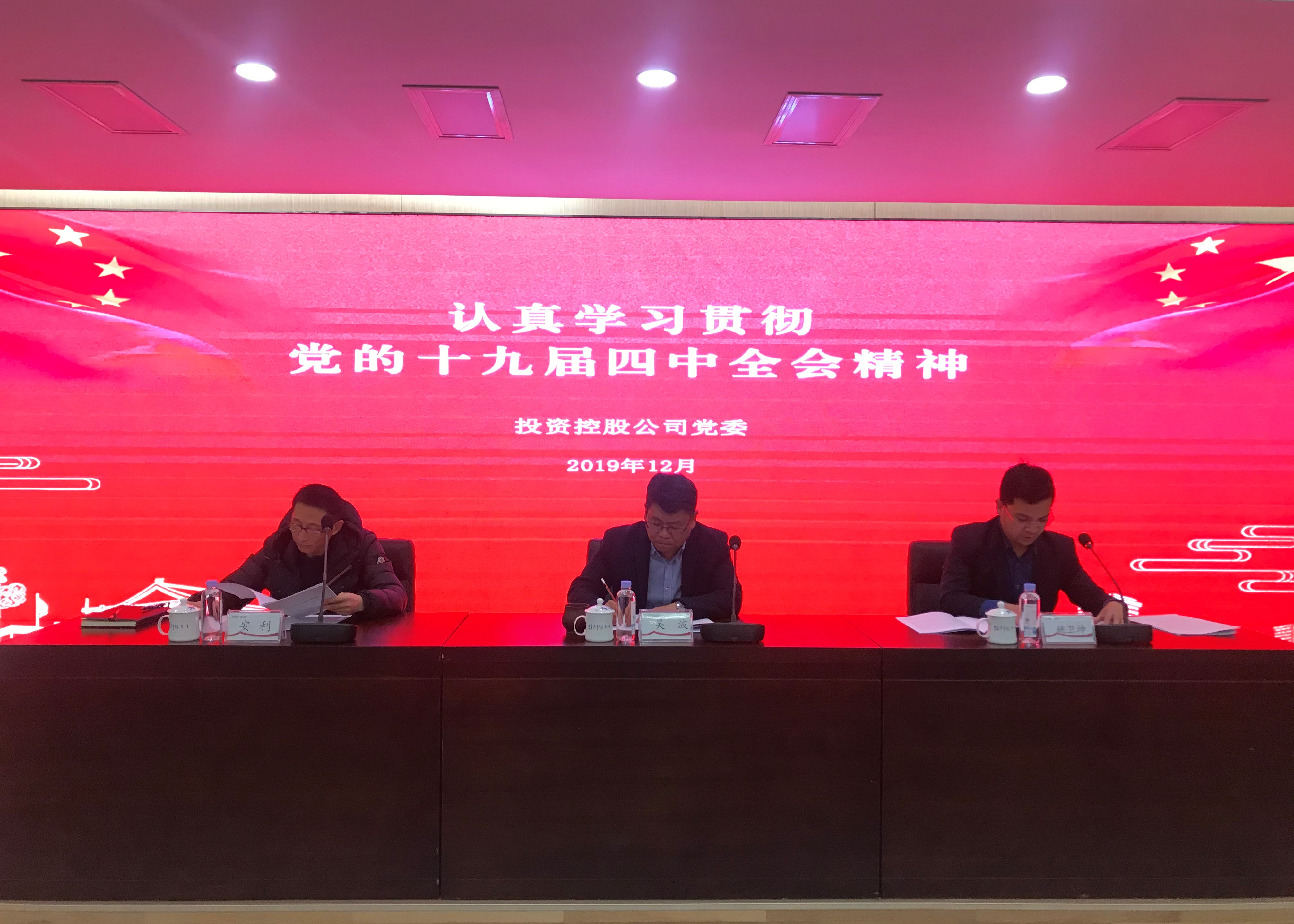 12月12日,投资控股公司党委召开党的十九届四中全会精神宣讲会,100余名党员干部参会,党委书记吴波、党委委员姚卫坤、安利同志对全会精神进行了宣讲。