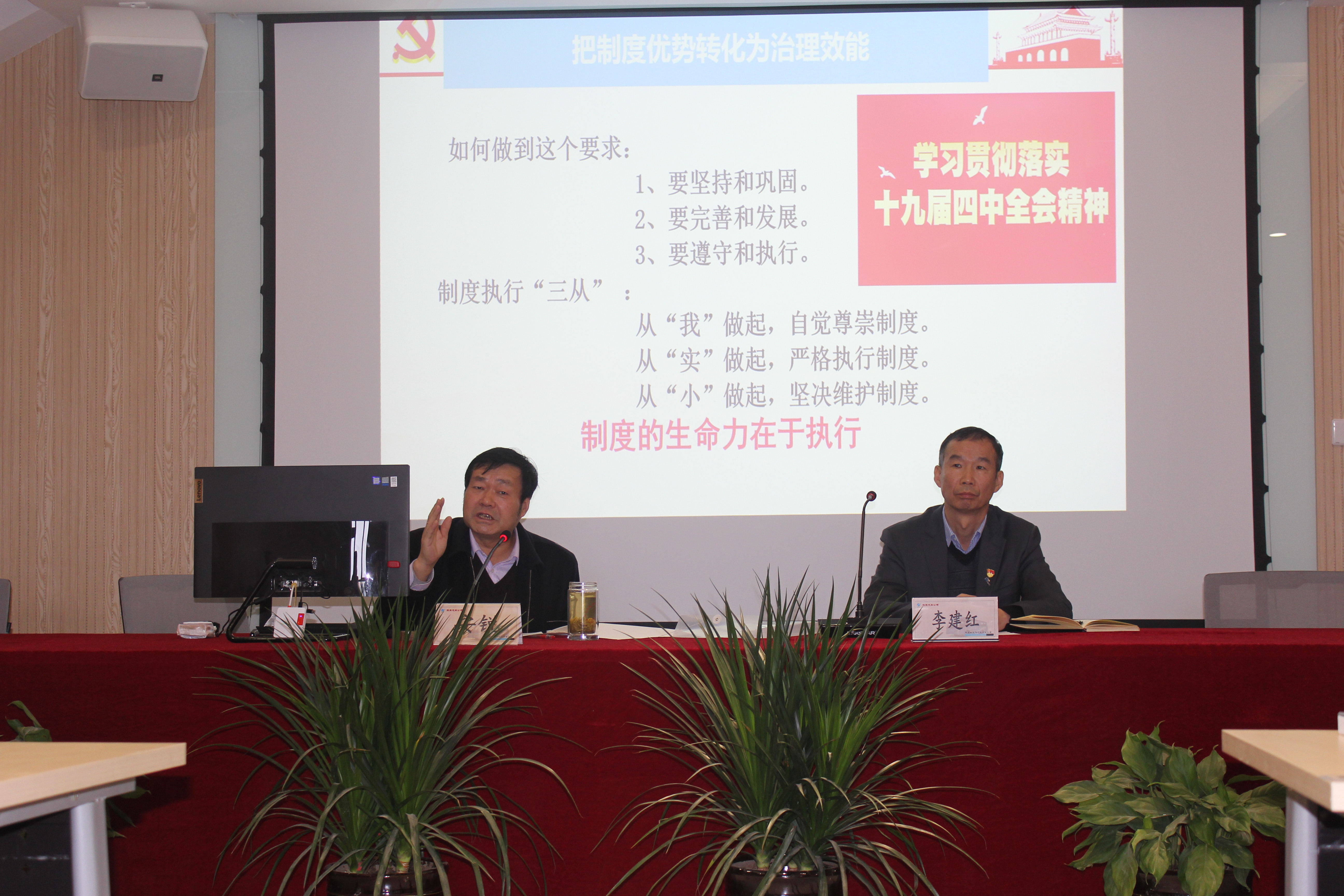 12月18日上午,博凯公司党委举办了十九届四中全会精神专题辅导培训会,邀请陕西省委党校副校长(陕西省行政管理学院副院长)安锐教授作专题辅导,培训会由公司党委副书记、纪委书记李建红主持,全体管理人员参加了培训会。
