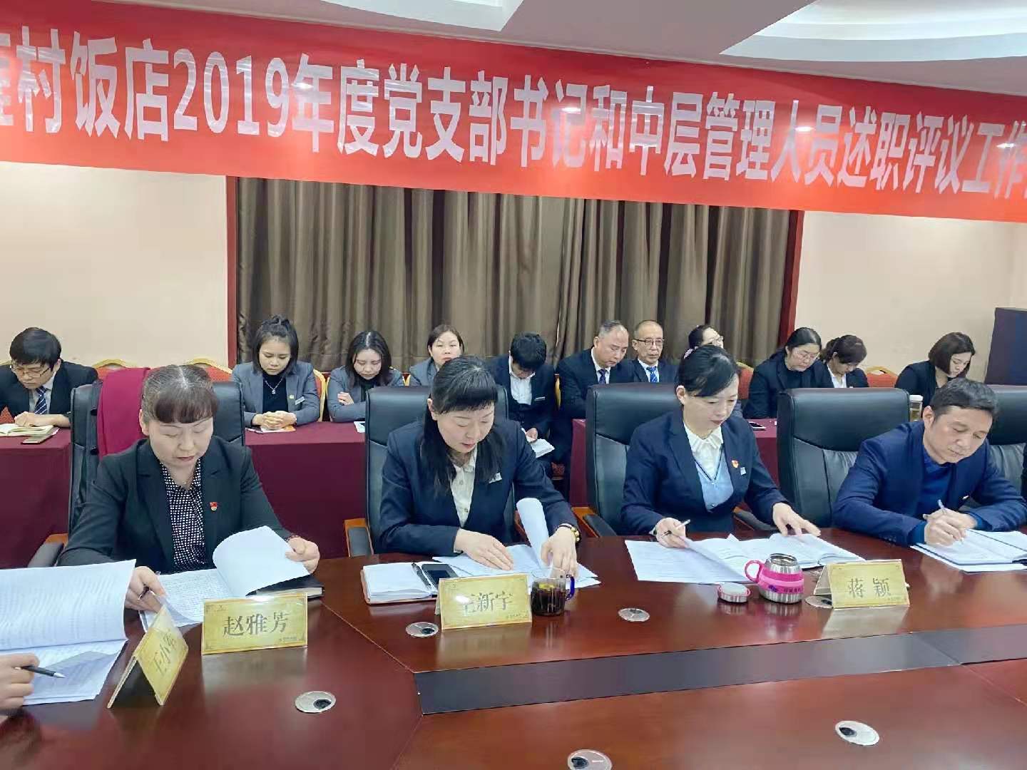 2020年1月9日,陕西雍村饭店组织召开2019年度党支部书记抓党建和中层管理人员述职评议工作会,饭店党委委员、班子成员、党员、入党积极分子、中层管理人员、职工代表42人参会,会议由总经理蒋颖、党委副书记薛小刚分别主持。