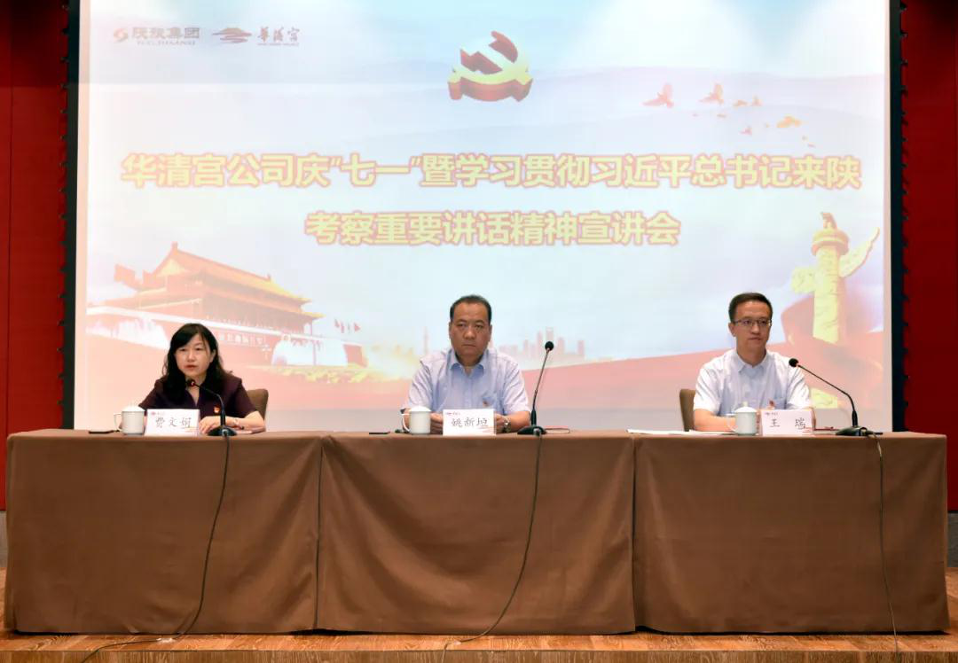 6月30日上午,华清宫召开庆“七一”暨“学习贯彻习近平总书记来陕考察重要讲话精神”宣讲大会,庆祝中国共产党成立99周年,并通过表彰先进典型,动员公司广大党员干部,进一步加强党性锻炼,增强党性修养,强化责任担当,不忘初心使命,坚定理想信念,立起新样子,树起新形象,展现新作为,携手努力推动企业高质量发展。
