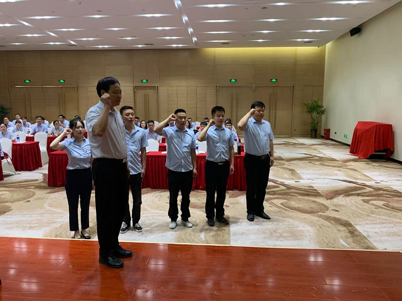 大会首先由公司总经理高峰同志带领新入党5名同志在党旗下进行宣誓,随后全体共产党员重温入党誓词。