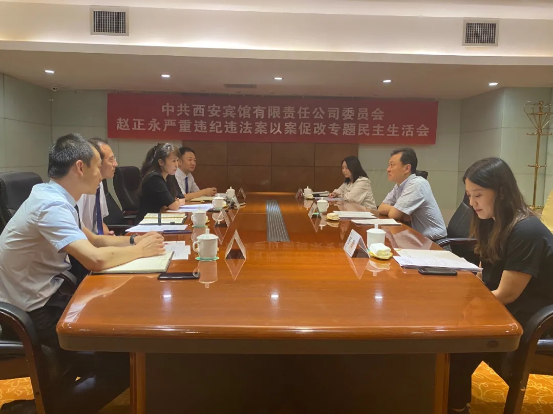 8月26日下午,西安宾馆有限责任公司召开赵正永严重违纪违法案以案促改专题民主生活会,宾馆党委书记、总经理曹瑞及三位副总经理参会,陕西旅游集团公司督导组成员、集团公司总经理助理、党务工作部部长郑汉林到会指导,会议由曹瑞同志主持。