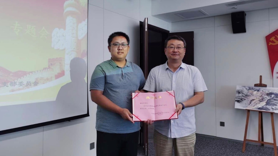 讨论结束后,党支部书记崔宁同志为获得陕西旅游集团优秀共产党员唐晓龙同志授予表彰证书。全体党员对章程、孙嘉娴两名入党积极分子成为预备党员进行了表决。