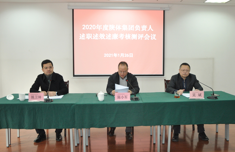 按照陕旅集团党委统一安排,1月26日上午,陕体集团2020年度企业负责人述职述效述廉考核测评大会在祥泰大厦四楼会议室召开。陕旅集团党委副书记 、董事、第二考核组组长陈小军,陕旅集团党委宣传部部长、第二考核组成员姚卫坤一行出席会议。会议由陕旅集团副总经理、陕体集团党委书记、执行董事吴斌主持。
