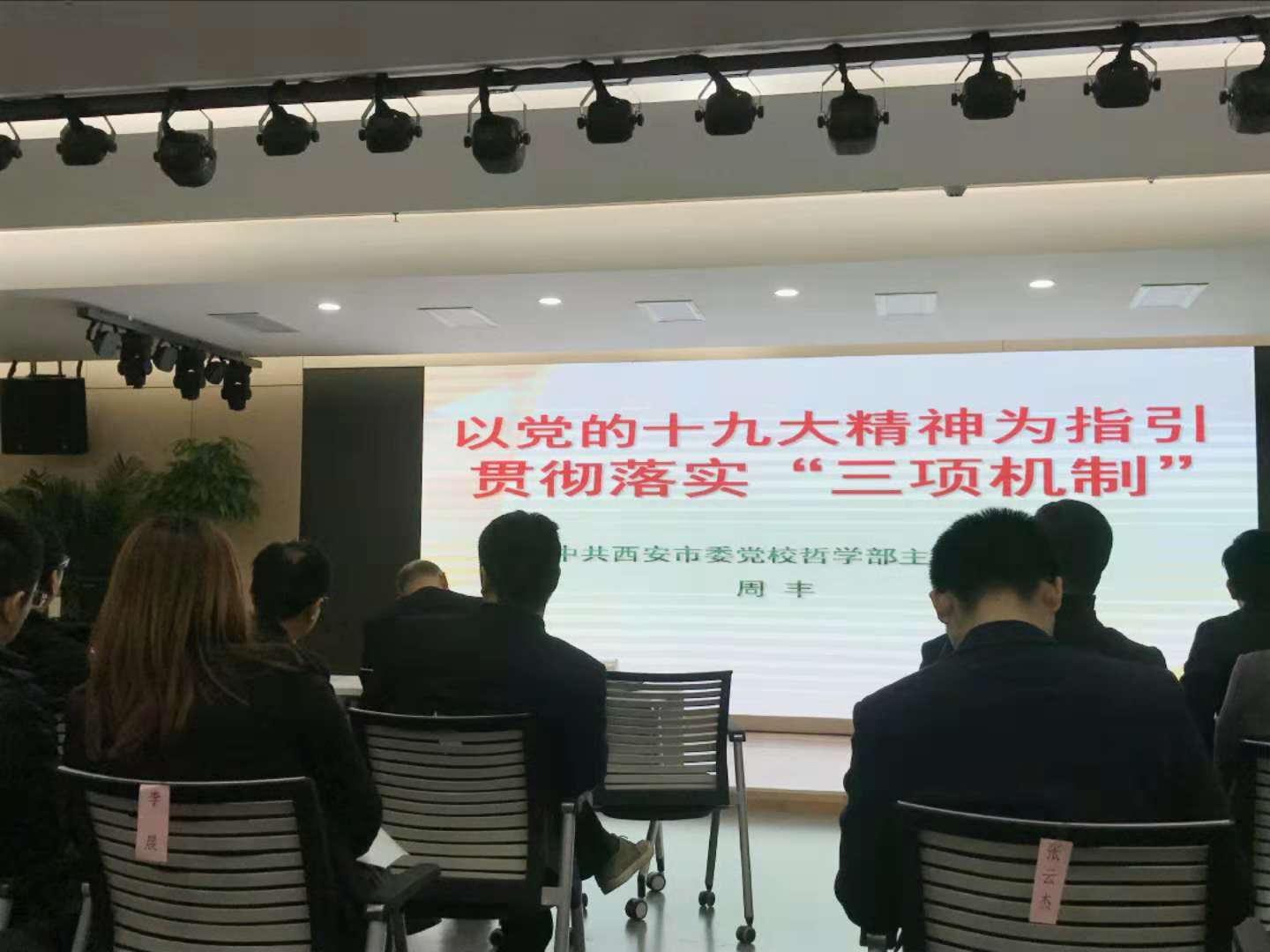 为了深入贯彻落实集团公司《关于强化“三项机制”学习狠抓制度落实的通知》文件精神,12月7日下午,投资控股公司邀请西安市委党校哲学部主任周丰教授,为干部职工作了题为“以党的十九大精神为指引,全面贯彻落实“三项机制”的专题讲座。讲座由公司常务副经理姚卫坤主持,金旅地产板块下属企业共150余人参加了此次培训。