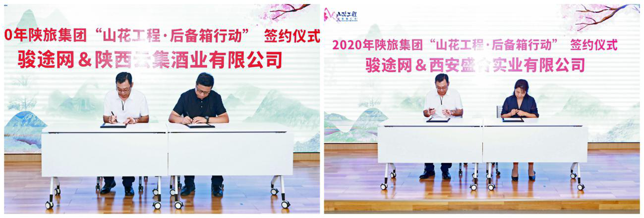 启动仪式上,陕旅集团骏途网与西安盛合实业有限公司、陕西云集酒业有限公司签署战略合作协议。