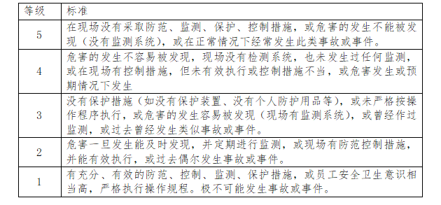 表1 事故发生的可能性(L)判断准则