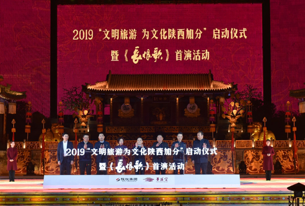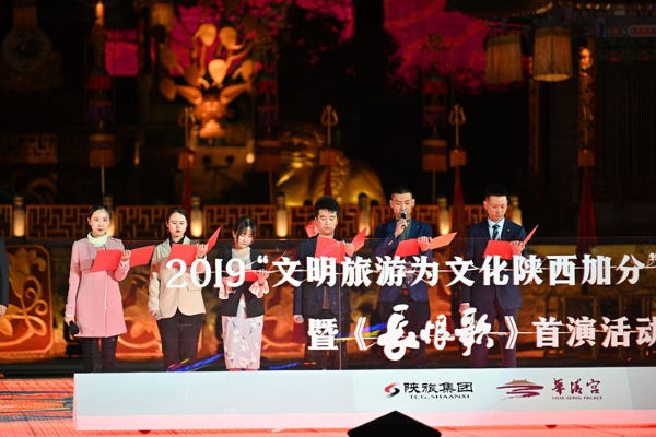 为全面落实文化和旅游部开展的“文明旅游为中国加分”宣传行动,3月24日晚,2019年“文明旅游为文化陕西加分”启动仪式暨《长恨歌》首演活动在华清宫隆重举行。陕西省委文明办、陕西省文旅厅、陕西旅游集团为西安市、宝鸡市、延安市授“文明旅游为文化陕西加分”旗帜,西安市文明办将“文明旅游为文化陕西加分”旗帜转给临潼区,传递文明旅游责任。
