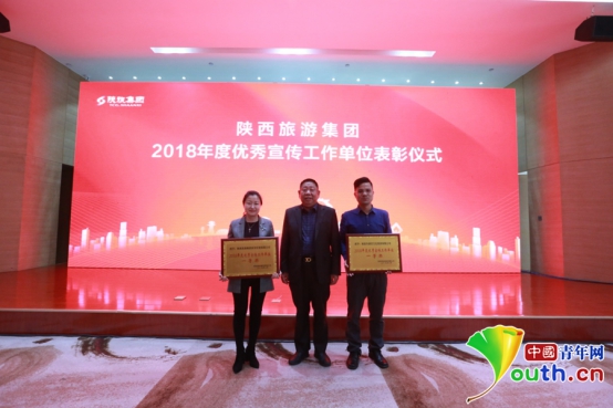陕旅集团党委副书记、董事常梦春为2018年优秀宣传工作单位一等奖颁奖。
