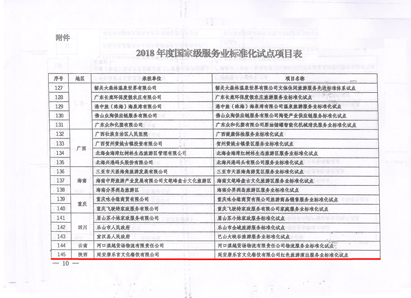 近日,国家标准化管理委员会下发《2018年度国家级服务业标准化试点项目的通知》,陕旅集团延安唐乐宫获批“国家级服务业标准化试点”。