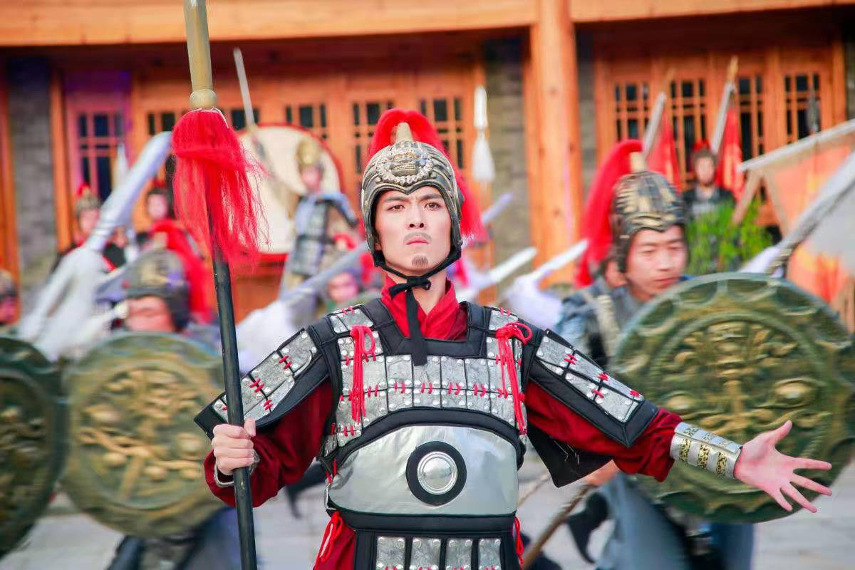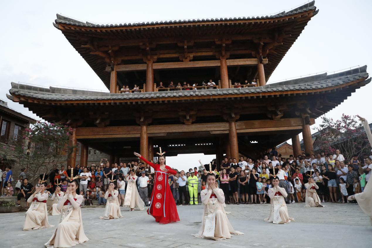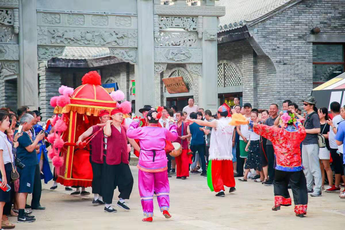 和着悠远嘹亮的迎宾号角声,金延安安澜门徐徐打开,领导嘉宾一同走进文化院落街区。新华书店前,铿锵有力的《迎宾腰鼓》舞动起来,步伐整齐一致,挥锤刚健有力,场面热烈震撼。《宋朝娶亲》、《不倒娘子》、《渔家傲•送将出征》、《丽人行》、相声新势力、陕北风情真人雕塑、宋风艺术秀等16场街区演艺精彩纷呈,从金戈铁马的千年延州府到激情燃烧的革命年代,街区现场热潮一浪接一浪。