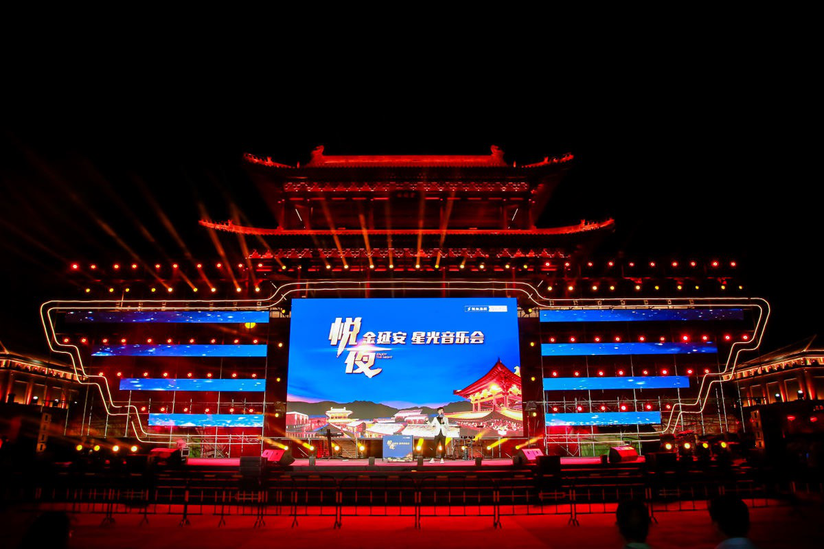 夜幕降临,金延安钟鼓楼广场人潮涌动,“悦夜金延安”星光音乐会在奔放热烈的DJ中拉开序幕,陕北民歌歌王贺国丰、西部摇滚歌王王建房深情演唱,将音乐会推向了高潮,时效摇滚乐队的劲爆演唱,台下数千人伴随着激昂的音乐声一起舞动,整个金延安城陶醉在音乐世界里。