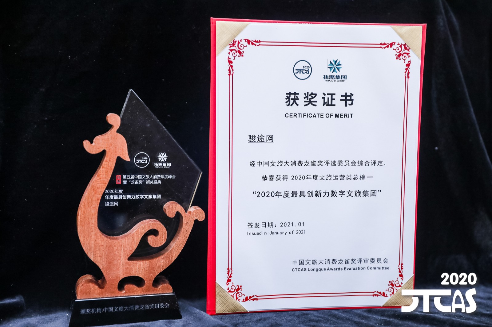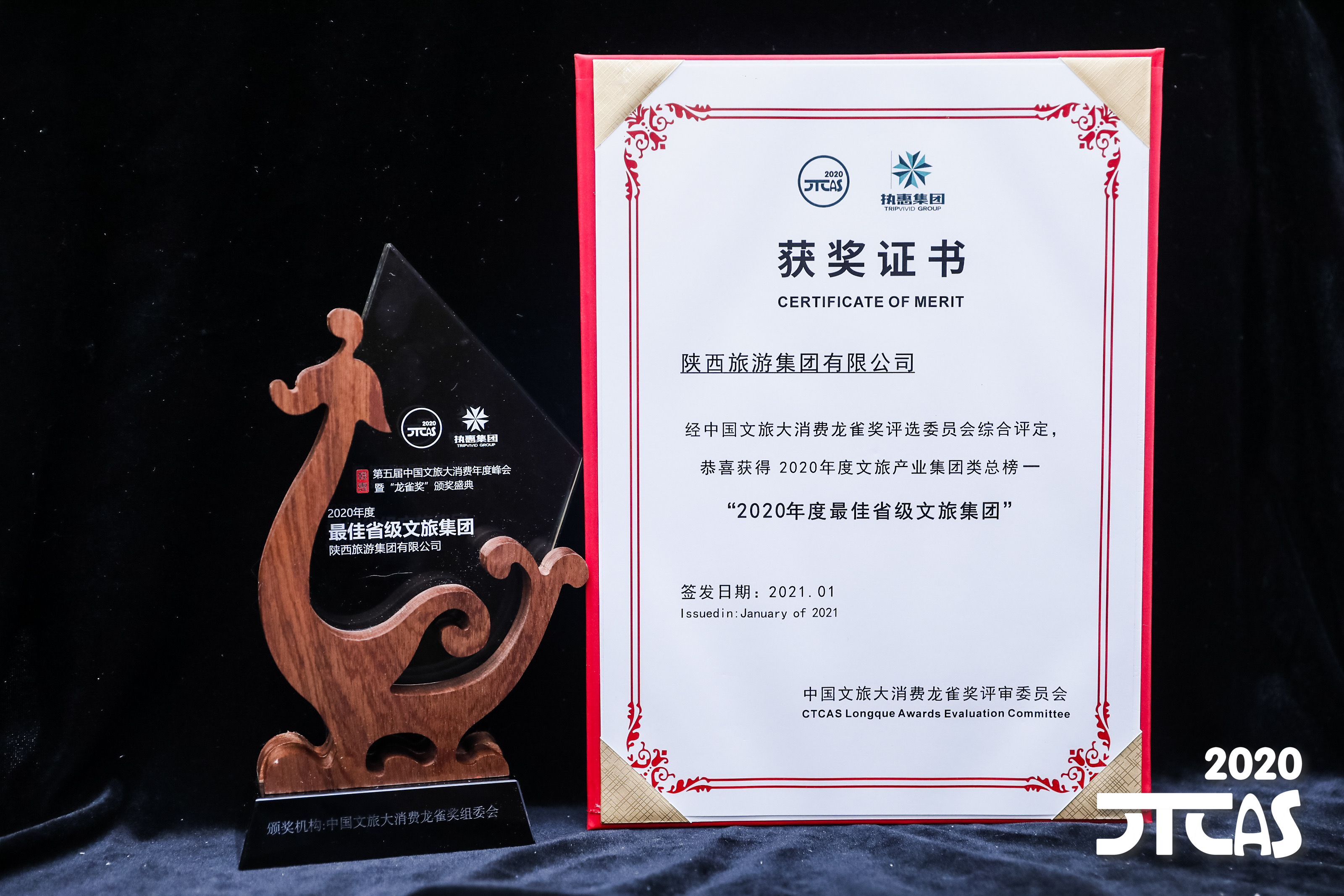 1月20日,第五届中国文旅大消费年度峰会暨“龙雀奖”颁奖盛典在上海盛大启幕。陕西旅游集团有限公司凭借优异表现被评为 “2020年度最佳省级文旅集团”,旗下骏途网被评为 “2020年度最具创新力数字文旅集团”。