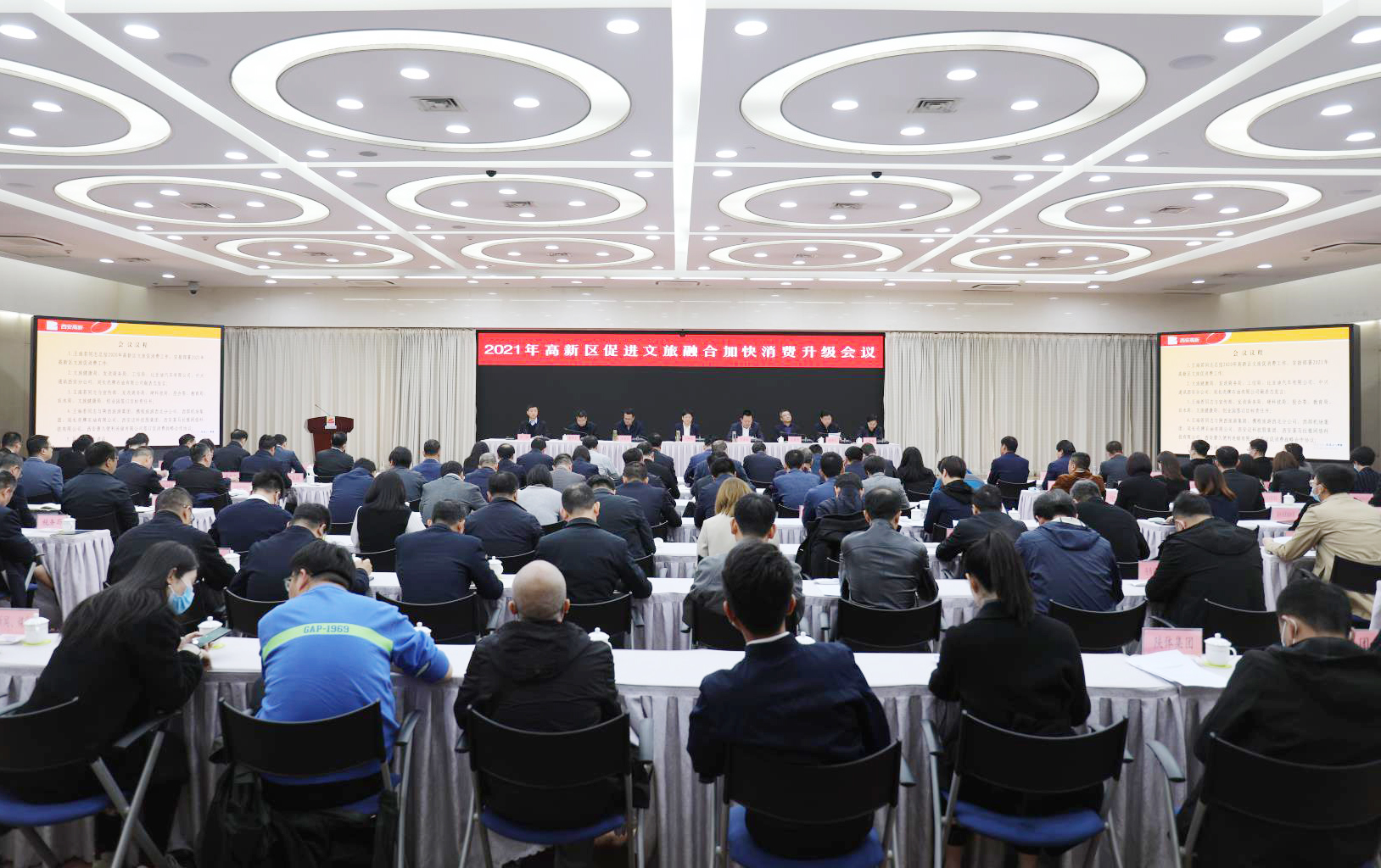 3月25日上午,高新区促进文旅融合 加快消费升级大会在都市之门顺利举行。高新区党工委、管委会全体领导出席会议,陕旅集团副总经理吴斌受邀参加会议。