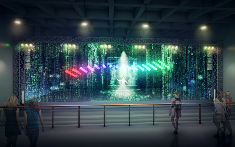 在电影视觉全息体验馆,运用虚拟投影技术与电影视觉特效技术结合的手段,将舞蹈演员梦幻般的表演与虚拟的视觉特效结合,从而让观众沉浸在梦境世界里。