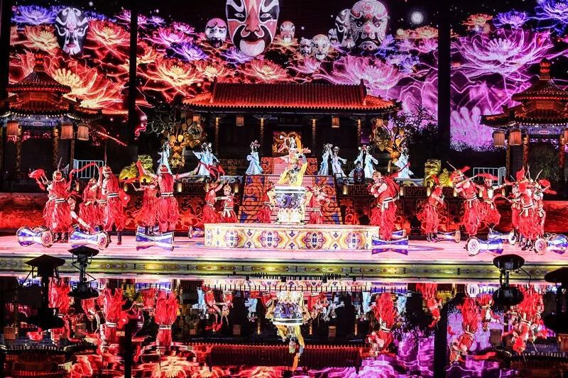 影视城除了有关中特色美食街区和仿古建筑外,还依托小说中的主要情节及人物打造了十几台文化演出,以动态的形式表现文化,升级游客互动体验,形成IP情景再造与延伸。