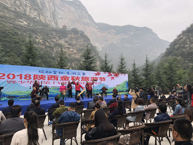 陕西省旅游协会会长辛建伟宣布“2018陕西金秋旅游节暨少华山第10届红叶节正式启动”之时,欢乐的歌声与锣鼓声汇成一片,正式拉开了金秋陕西笑迎八方游客和“陕西人游家乡”的大幕。