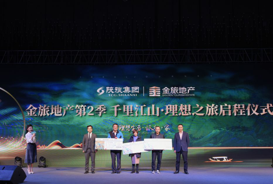 12月1日,“金旅地产第2季千里江山•理想之旅启程仪式”在西安曲江W酒店盛大举行。文学巨匠肖云儒、百家讲坛特邀文化学者杨瑾、新浪陕西总经理付士山、环球旅行家李香颖与近千名陕西省地产、商业、旅游等行业精英、金旅地产商户代表、千里江山•理想之旅报名的金旅HOME会员代表及三十余家中省市媒体汇聚于此,共同探秘《千里江山图》的传奇,见证“千里江山•理想之旅启程仪式”的华彩盛况。陕旅集团投资控股有限公司董事长王强;陕旅集团建设有限公司总经理高勤银;陕旅集团投资控股有限公司常务副总经理姚卫坤;陕旅集团建设有限公司常务副总经理王鹏;陕旅集团品牌与企业管理部副部长张雨尘;陕旅集团建设有限公司副总经理杨亚东;陕旅集团投资控股有限公司副总经理韩铁军、徐军敬出席了本次活动。