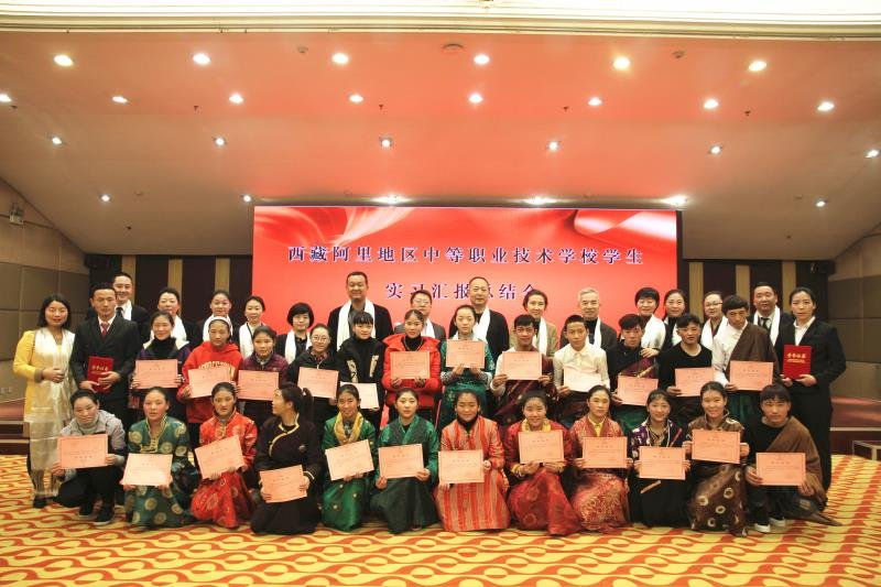 在结业典礼上,文化旅游厅顾劲松副厅长,对陕旅集团近年来的“援藏”工作给予高度评价,尤其是对阿里职业技术学校学生的培训给予了充分的肯定,体现了陕旅集团作为陕西省大型国有企业的政治担当,陕旅集团的经验值得全省推广。集团援藏干部张帆发言说:经过对阿里地区师生的两期的培训学习,架起了西藏阿里党政机关和陕旅集团合作之间的桥梁,架起了汉族和藏族同胞民族团结之间的桥梁,架起了阿里职业学校和饭店管理集团学习之的桥梁,架起了藏族学生和培训老师感情之间的桥梁。与会期间,阿里的学生纷纷发言,谈感受,谈成果,谈感恩,并且展示了学习成果。为了表示对陕旅集团的感谢,学生们进行了民族特色的歌舞表演。会后集团副总经理王汉琳与大家合影留念。第二天,陕旅集团安排阿里师生继续赴华清宫参观学习。
