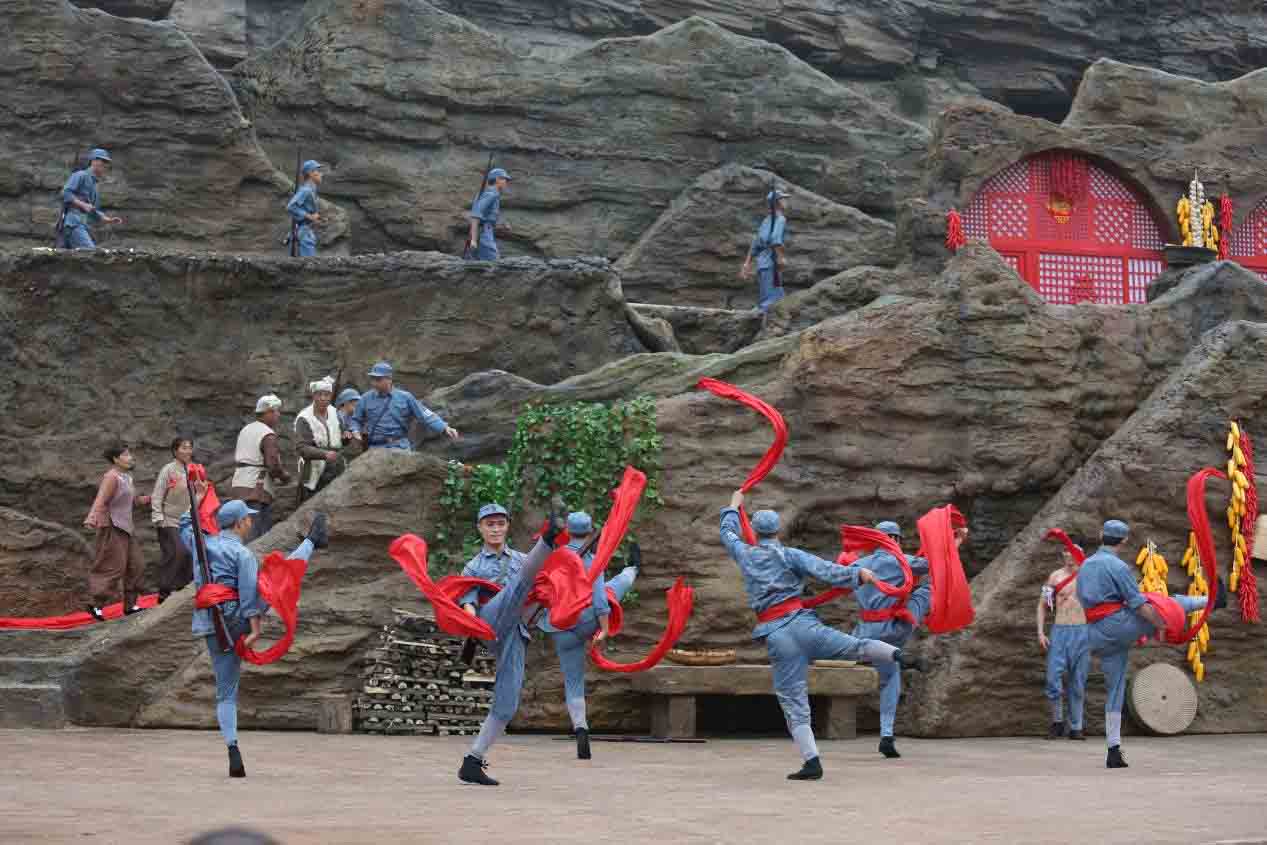 实景演出《黄河大合唱》是国内首个巨型机械艺术水幕实景剧场,演出以抗日战争八路军东渡黄河为故事背景,以《黄河大合唱》为贯穿线索,以壮美的壶口瀑布自然景观为舞台, 以诗歌咏唱衔接引领,结合戏剧舞剧表演和电影蒙太奇的手段,动态沉浸机械多维度舞台,生动展现《黄河大合唱》的创作背景和现实意义,唱响黄河文化,黄河精神。